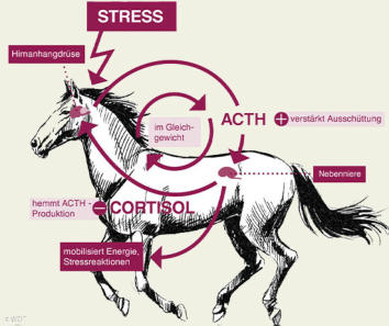 Zuviel Cortisol bewirkt bei gesunden Pferden eine Dämpfung der ACTH-Ausschüttung. Dazu wird der Neurotransmitter